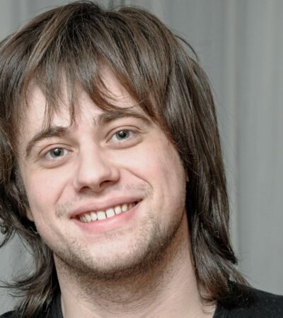 A hand holding a smartphone displaying a webpage titled 'Creating a Brand' with navigation options like Home, Discovery, Members, and Topics. The background is out of focus, providing a neutral setting.
